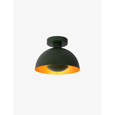 Le plafonnier SIEMON séduit par son design minimaliste et ses lignes douces. Sa finition vert mat à l’extérieur et son intérieur doré offrent un contraste chaleureux, idéal pour créer une ambiance tamisée et raffinée.