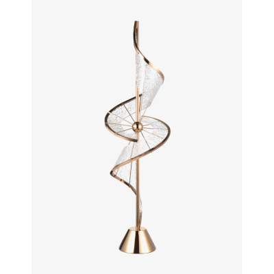 La lampe à poser SALEHA sublime l’espace avec sa silhouette spirale unique, inspirée d’un mouvement aérien. Sa structure mêle métal doré rosé et acrylique texturé, diffusant une lumière LED douce et enveloppante.