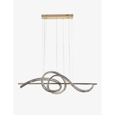 La suspension LED JARMILA combine l’épure du métal doré à la délicatesse du cristal facetté, dans une composition artistique et aérienne. Son design fluide semble flotter, capturant la lumière dans un mouvement infini.