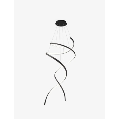 La suspension ZAIDO se décline ici dans une version plus compacte tout en conservant son design aérien en spirale, idéal pour les espaces modernes à plafond intermédiaire. Son coloris noir mat lui confère un caractère sobre et raffiné, parfait pour des intérieurs contemporains.