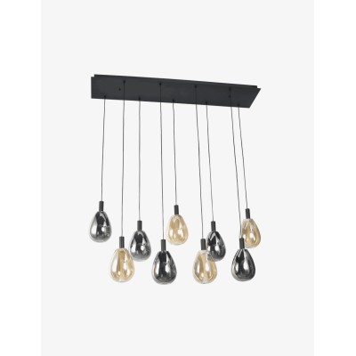 Majestueuse et chaleureuse, la suspension LED ZULI se distingue par son design étendu (120 cm de largeur) et sa finition cognac raffinée. Sa structure mêle métal et verre soufflé, pour une présence aussi légère que sculpturale dans tous vos espaces de réception.